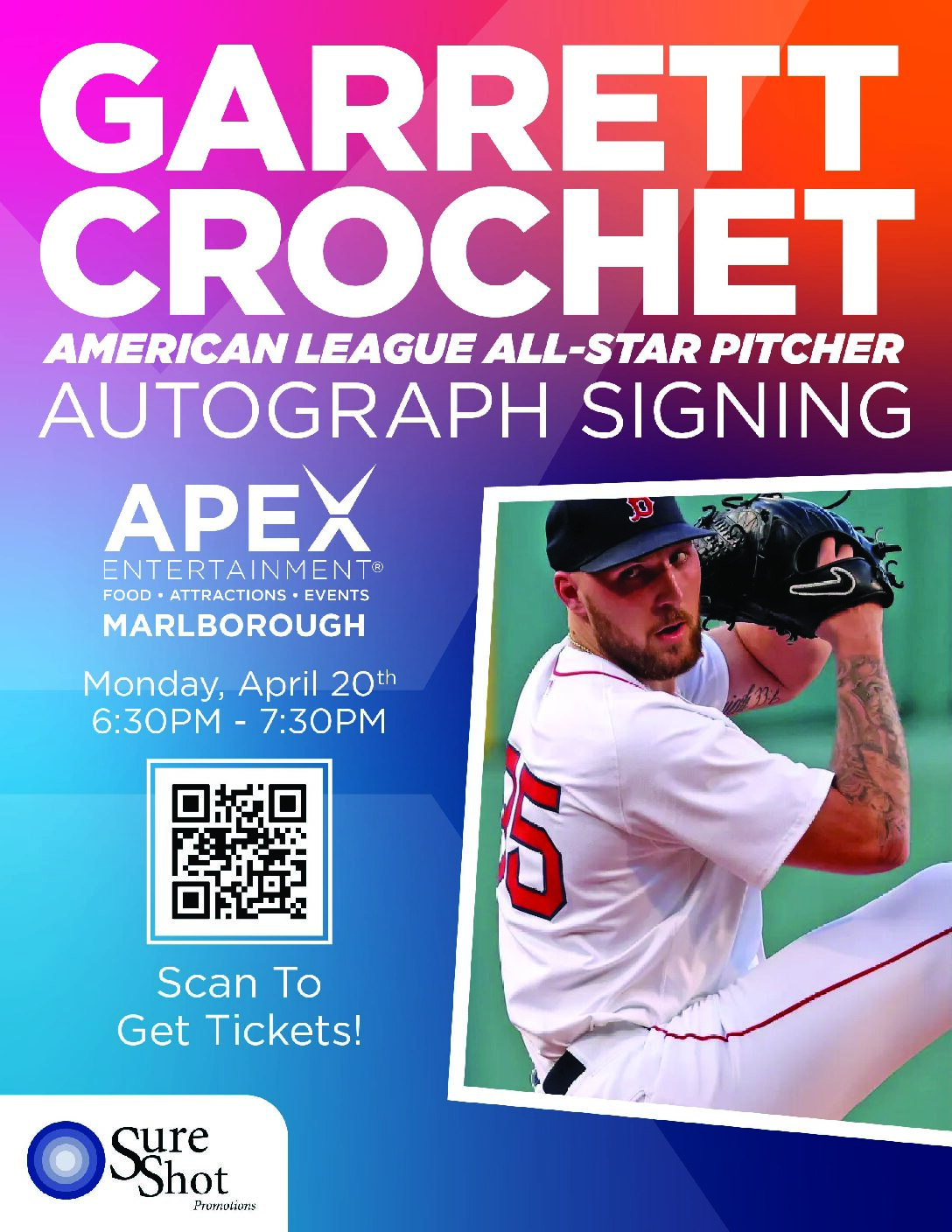 Garrett Crochet is heading to Apex! Come have the opportunity for a photo op with this baseball legend! ⚾