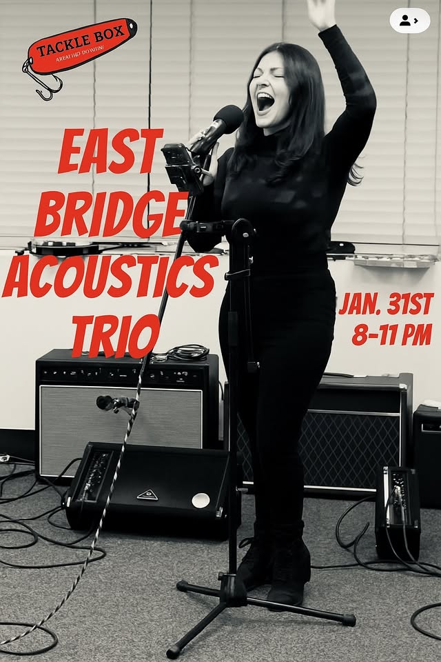 East Bridge Acoustics Trio Join us for a night of acoustic vibes and great brews as East Bridge Acoustics Trio brings their signature sound to the Tackle Box stage. Free entry - just bring your friends and good energy!