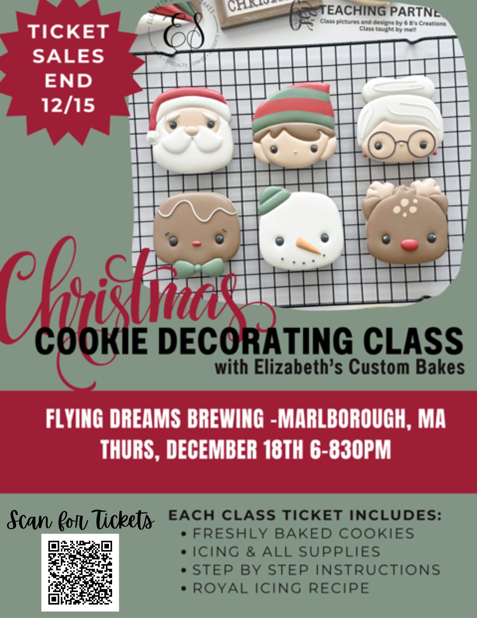 Learn to decorate these adorable sugar cookies with royal icing! In person instruction with Liz from Elizabeth’s Custom Bakes at Flying Dreams Brewing in Marlboro, Ma If you enjoy cookie decorating, if your frustrated with royal icing or just want to enjoy something fun with friends or family and get into the holiday spirit this […]